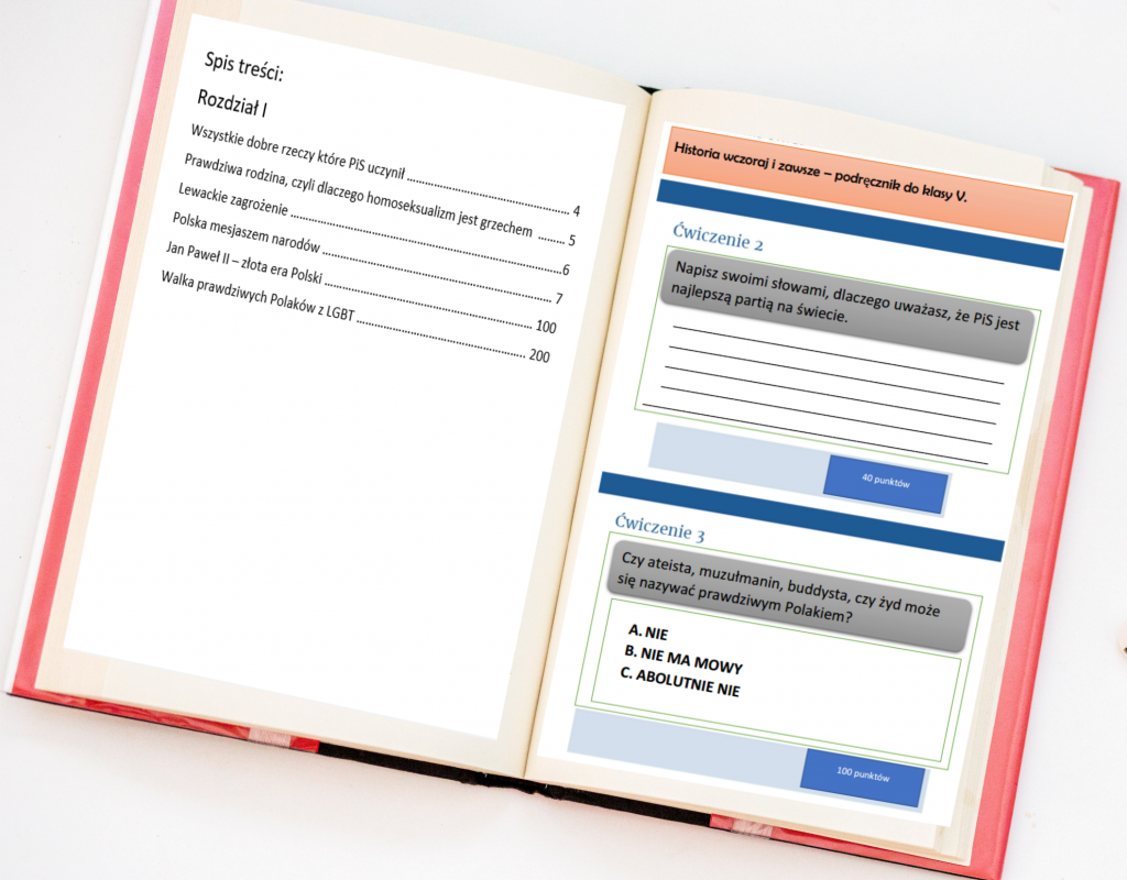 Przykładowo, sam minister edukacji chce wprowadzać do kanonu lektur dzieła zwierzchnika kościoła katolickiego i głosi motywowane religijnie poglądy dyskryminujące kobiety, sprowadzające je do roli reproduktorek, którym “jedynie wmawia się, że są takie same jak chłop”. [2] Mianowanie ministra akcentującego kwestie wpływu doktryn religijnych na edukację było pierwszym sygnałem. O panu Czarnku już pisaliśmy w kontekście jego walki z problemem otyłości i to tylko u dziewczynek. Kolej na jego nowego pomocnika, Artura Góreckiego, historyka, teologa, publicystę oraz propagatora edukacji klasycznej, który został pełnomocnikiem MEiN ds. podstaw programowych i podręczników.