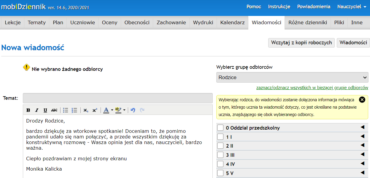 Jak? Mamy na przykład do dyspozycji doskonałe narzędzie, które część z nas może postrzegać jako narzędzie kontroli, a które może nam to wszystko bardzo ułatwić. Dzienniki elektroniczne stanowią bowiem bezpośredni kanał komunikacyjny pomiędzy nauczycielami i rodzicami. Zamiast używać funkcji “wyślij wiadomość” jedynie w celu zgłoszenia problemu, zacznijmy z niej korzystać także do świadomego budowania relacji z rodzicami, wysyłajmy komunikaty pozytywne, okazujmy naszą troskę o dobrostan ucznia. Tylko w ten sposób mamy okazję zniweczyć działania polityków, którzy chcą nas skłócić a narzędzie kontroli przekształcić w sieć wzajemnego wsparcia. To jedno z przykładowych działań, jakie powinniśmy podjąć w obliczu nadchodzącego buldożera centralizacji, który już rozgrzewa silnik.