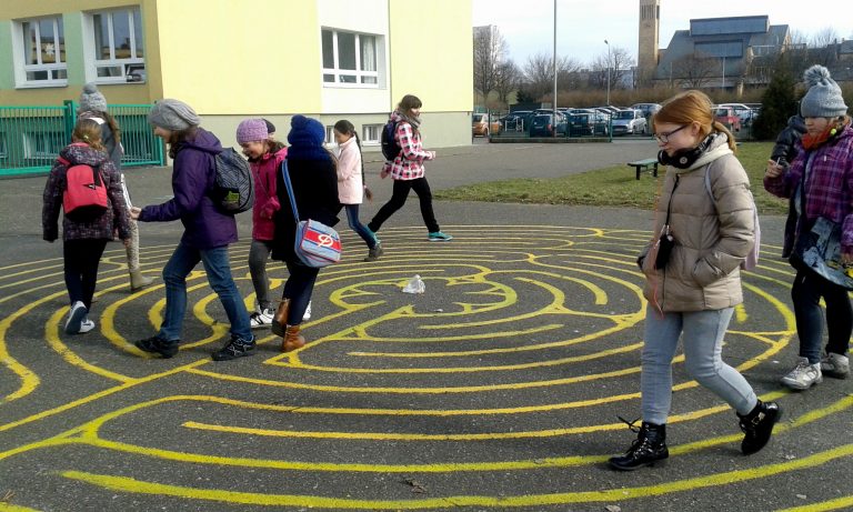 W ramach projektu proponowałam wykonywanie podczas zajęć dodatkowych, godzin wychowawczych, lekcjach przedmiotowych, a także w domu ćwiczeń na synchronizację półkul mózgowych, wizualizacji, która uruchamia wyobraźnię oraz relaksowania umysłu. W holach szkoły można było ćwiczyć wyciszanie umysłu, chodząc po labiryntach wzorowanych na tych z Chartres i Reims (składają się one z pojedynczej ścieżki, tworzącej skomplikowany wzór, ale zawsze prowadzącej do centrum). Powstały dzięki artystce i nauczycielce Joannie Buczak. Skomplikowane figury jednościeżkowe budowane i rozwijane wykorzystywane są dziś w psychoterapii, w edukacji, do pracy z dziećmi (choćby z ADHD), do zabawy… Można je spotkać w parkach, szkołach, korporacjach, więzieniach, w centrach medycznych, ośrodkach medytacyjnych, w kościołach i przed kościołami. Można chodzić po nich dla higieny psychicznej, relaksu. W szpitalach jest cennym narzędziem dla pacjentów, ich rodzin, lekarzy. W firmach pomaga zbudować zespół, skupić go wokół jakiegoś celu. Niektórzy organizują w tej przestrzeni koncerty muzyki uzdrawiającej, pracują z ciałem, ćwiczą. Może przekonujący będzie fakt, że w swojej posiadłości Sting również uwielbia spacerować po zielonej konstrukcji wzorowanej na tajemniczym labiryncie z katedry w Chartres.