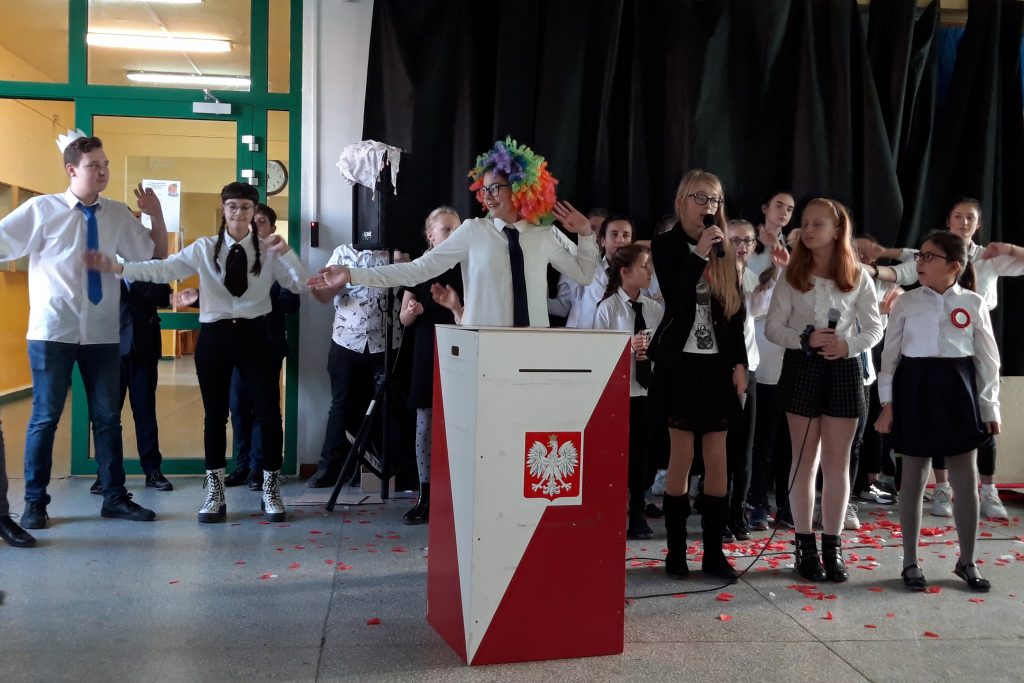 Celem głównym zajęć było rozwojowijanie własnych zainteresowań i osobowości. Młodzi ludzie odkrywali w sobie potrzebę i umiejętność zmieniania świata wokół siebie na lepszy. W psychologii rozwojowej wiek 11-13 lat zwany jest wiekiem „paczek”, grup. To czas intensywnego rozwoju potrzeb i uczuć społecznych, a stopień ich zaspokojenia zależy w dużym stopniu od akceptacji grupy. W tym czasie młodzi ludzie odczuwają potrzeby doznawania silnych emocji i sprawdzenia samego siebie. Coraz częściej czytamy o uzależnieniu od technologii, o nieumiejętności budowania relacji w realnym świecie. Zatem rolą wychowawców (rodziców i nauczycieli) jest stworzenie warunków, aby w okresie najbardziej intensywnego rozwoju społecznego dzieci miały możliwość przebywania wśród rówieśników w realnym świecie, a przynależność do współdziałającej grupy zapewniała im wszechstronny rozwój – osobowościowy, emocjonalny i moralny. Ważne jest, by miały możliwość kształtować postawę wobec drugiego człowieka w szukaniu sposobu na życie, w związku z dbałością o relacje społeczne. Poprzez działania podejmowane w ramach projektu przez Samorząd Uczniowski chcemy oddziaływać na społeczność szkolną. W ramach zajęć uczennice i uczniowie badali i określali własną tożsamość, zapoznali się z biogramem Jacka Kuronia i wartościami przez niego wyznawanymi. Zdobywali wiedzę na temat stereotypów, uprzedzeń, dyskryminacji, zastanawiali się jak reagować, jakie są różnice między patriotyzmem a nacjonalizmem i rasizmem. Brali udział w spektaklu „Kolorowa czyli biało-czerwona” granego przez artystów związanych z Fundacją Banina, który był prezentowany w SP 11 trzykrotnie. Scenariusz do spektaklu napisał Piotr Przybyła. W roli głównej wystąpił Hubert Dyl.
