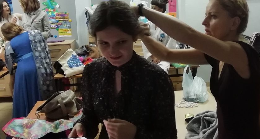 Takim wyzwolicielem emocji miał być aparat fotograficzny. Do działania w myśl Susan Sontag, że W gruncie rzeczy aparat zamienia każdego człowieka w turystę wędrującego po rzeczywistości innych ludzi, a ostatecznie po własnej zaprosiłyśmy panią Katarzynę Kitajgrodzką, fotografkę, należącą do Rady Rodziców SP 11 w Poznaniu. W tym czasie sala lekcyjna zmieniła się w studio fotograficzne. Na planie panował pełen profesjonalizm. Dziewczęta wcześniej wyszukały zdjęcia swoich bohaterek, przygotowały kostiumy, rekwizyty. Towarzyszyła nam twórcza atmosfera, można było dostrzec wsparcie, jakiego uczestniczki projektu sobie udzielały, pożyczając brakujące części garderoby, pomagając przy układaniu fryzur. Nie były to zwykłe zdjęcia, nie wystarczyło tylko pozować, trzeba było wejść w rolę, a więc poszukać jakiejś wspólnej prawdy łączącej mnie i bohaterki. Przyświecała nam myśl nieżyjącego już austriackiego fotografa Ernsta Haasa, który powiedział, że Zdjęcie to wyrażanie wrażeń. Jeżeli piękno nie będzie istnieć w nas samych, to jak w ogóle będziemy mogli je zauważyć? Okazuje się, że stając przed obiektywem aparatu, odnajdujemy w bohaterkach cząstkę nas samych, a zatem mamy też w sobie ich siłę, odwagę, radość. Jedyne, co musimy zrobić, to pomóc im dojść do głosu.